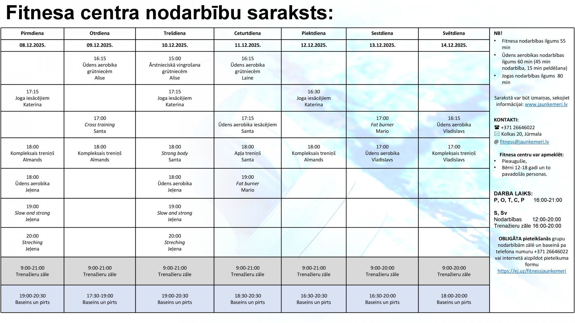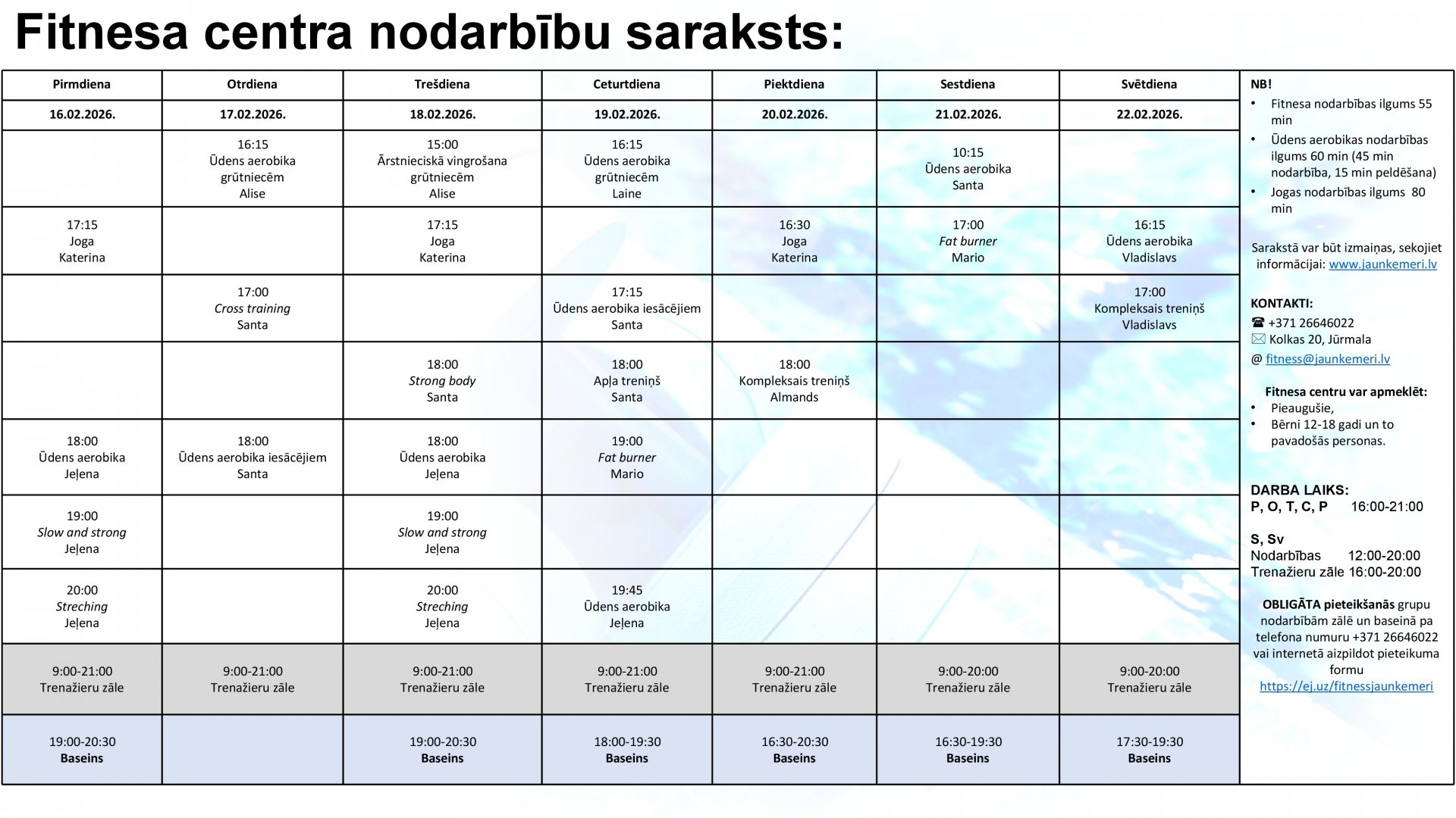 Uzmanību! Lai apmeklētu Fitnesa centra nodarbības, lūdzam aizpildīt pieteikšanās anketu internetā: https://ej.uz/fitnessjaunkemeri